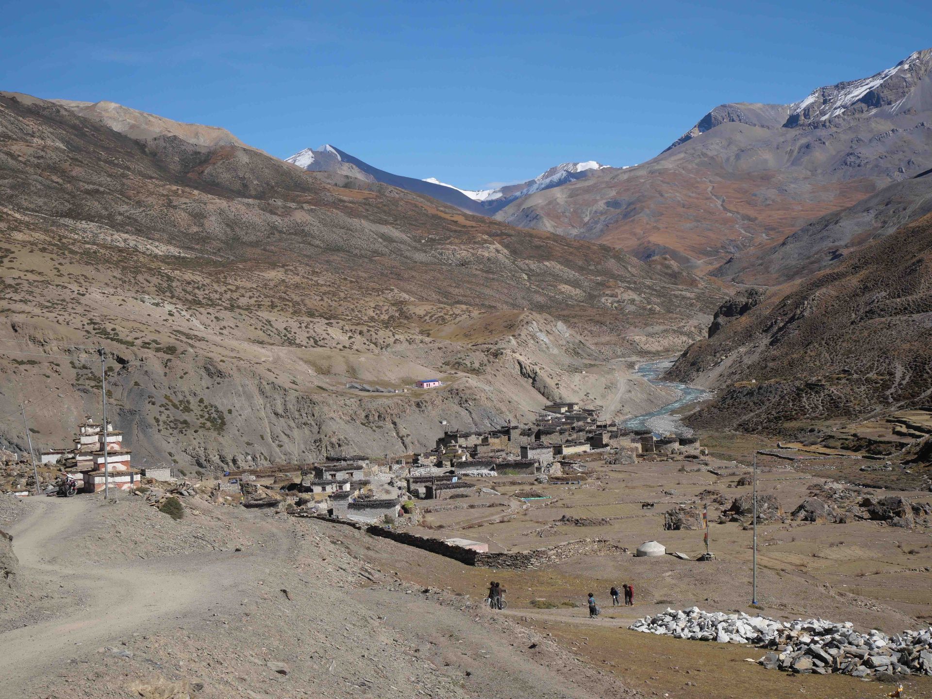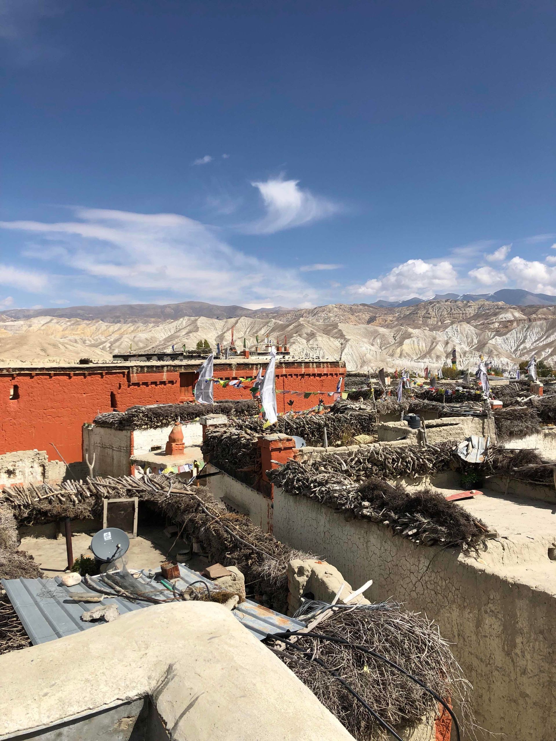 In Do Tarap wurde ein verdienter Ruhetag eingezogen bevor es über 2 Pässe (5460 m und 5170 m) nach Charkhabhot weiterging, Jedenfalls war dieser Abschnitt herrvorragend zur Akklimatisation geeignet, da auf dem Weiterweg Richtung Lo Mantang ein Pass von 5800 m zu queren war. In Charkabhot war ich ja schon mehrere Male zu Besuch, inzwischen gibt es dort auch eine Natelantenne, aber WLAN in den Unterkünften ist noch nicht eingezogen. Telefonieren war möglich, der Datenverkehr nur über die vorhandene Edge-Verbindung aber kaum möglich.