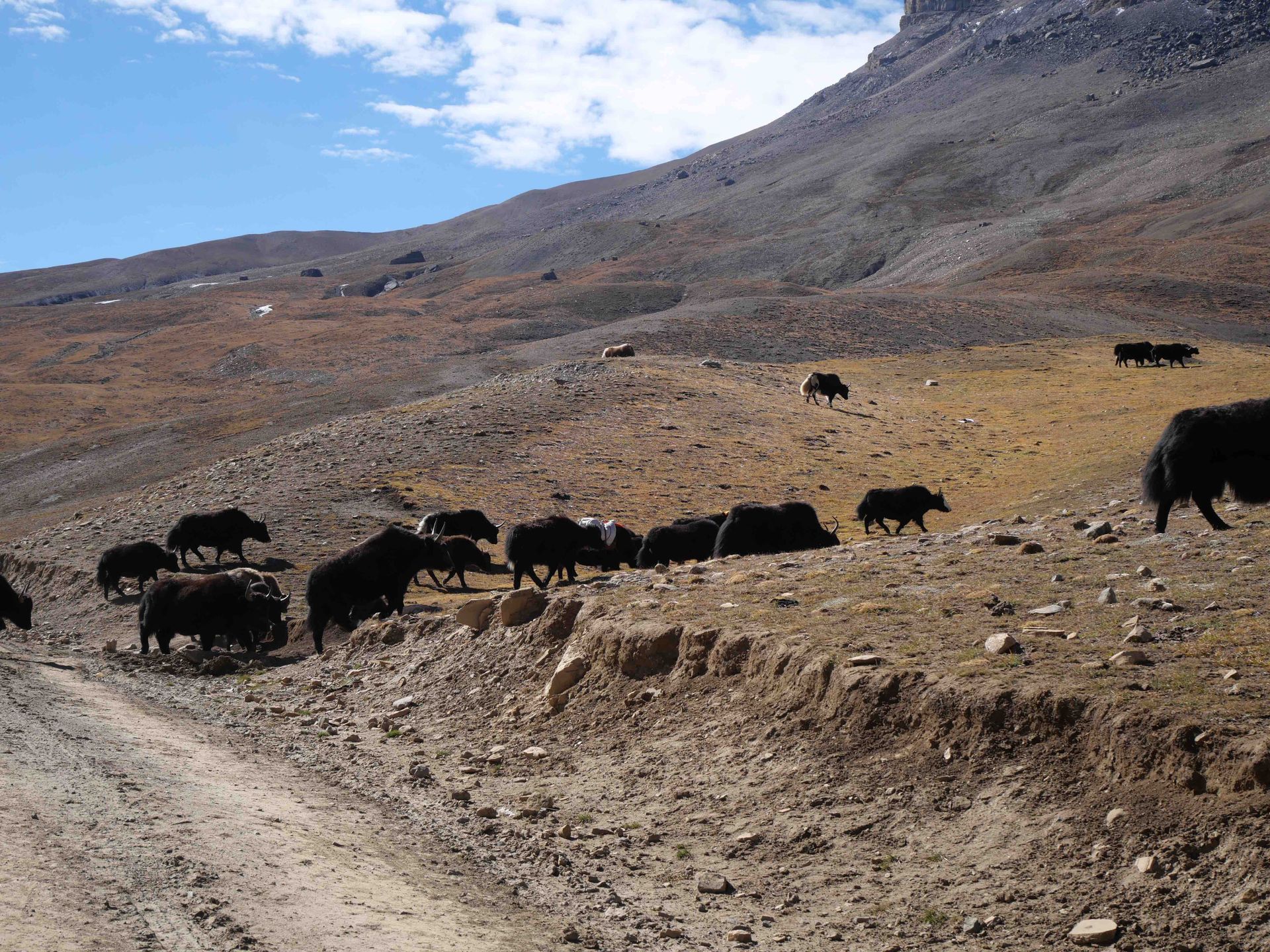 Wie uns in Charkhabhot beschieden wurde, würden höchsten Yak-Hirten und ihre Herden sich in diesen Hochtälern aufhalten. Wege gäbe es nicht überall und so ist man auf gutes Wetter angewiesen, um nach Sicht laufen zu können.