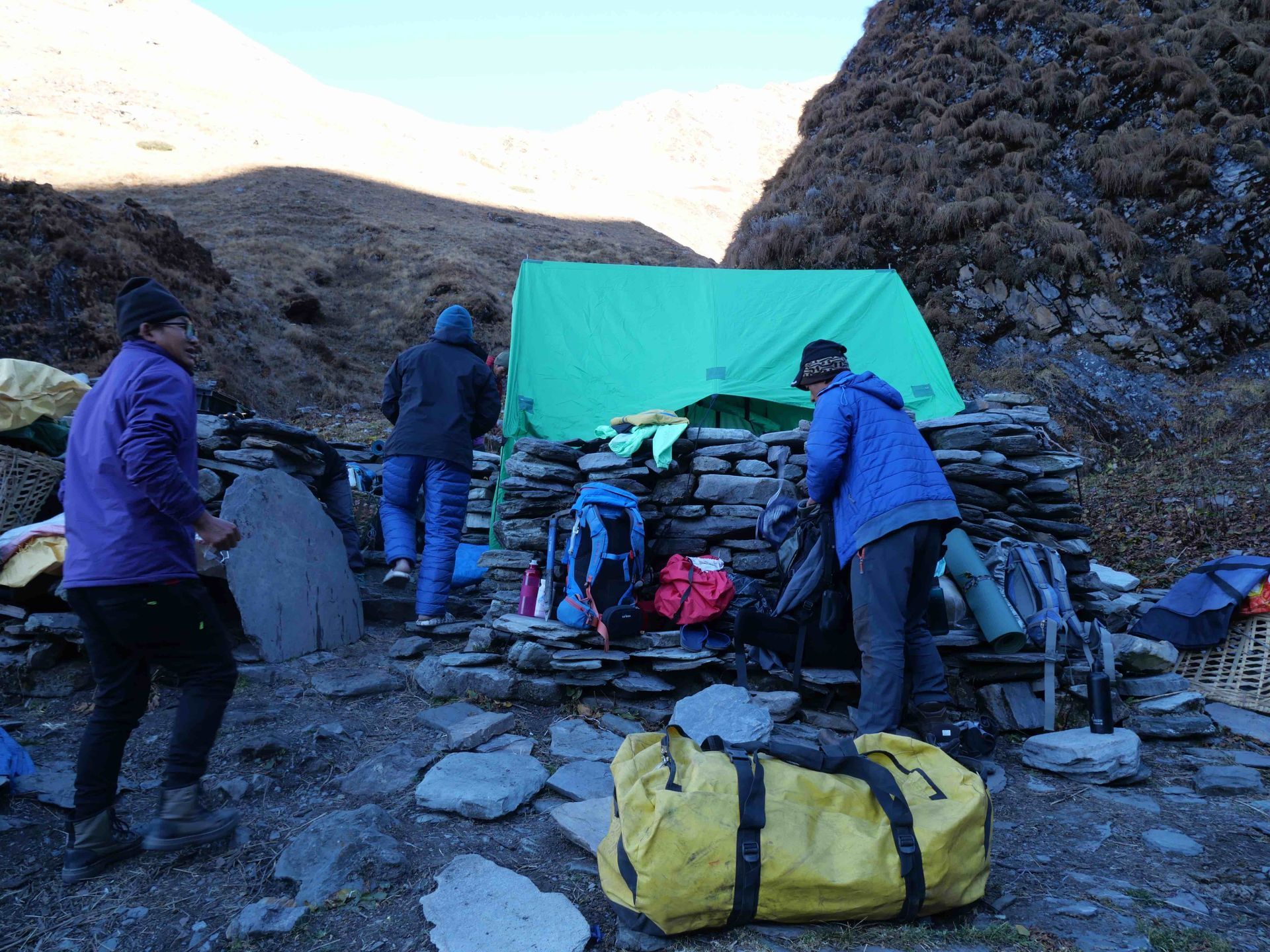 Auf dem Weg von Dhorpatan nach Dolpo (Dunai) durch die Provinzen Baglung, Rukum und schliesslich Dolpo war es Abends, Nachts, Morgens of bissig kalt. Zwar ist der November der niederschlagsärmste Monat in Nepal, daher gut für Trekking geeignet, aber die Kälte muss man aushalten können. Beim ersten Mail Zelten erlebten wird enn auch einen veritablen Schneesturm, gleichzeitig mit Blitz und Donner.