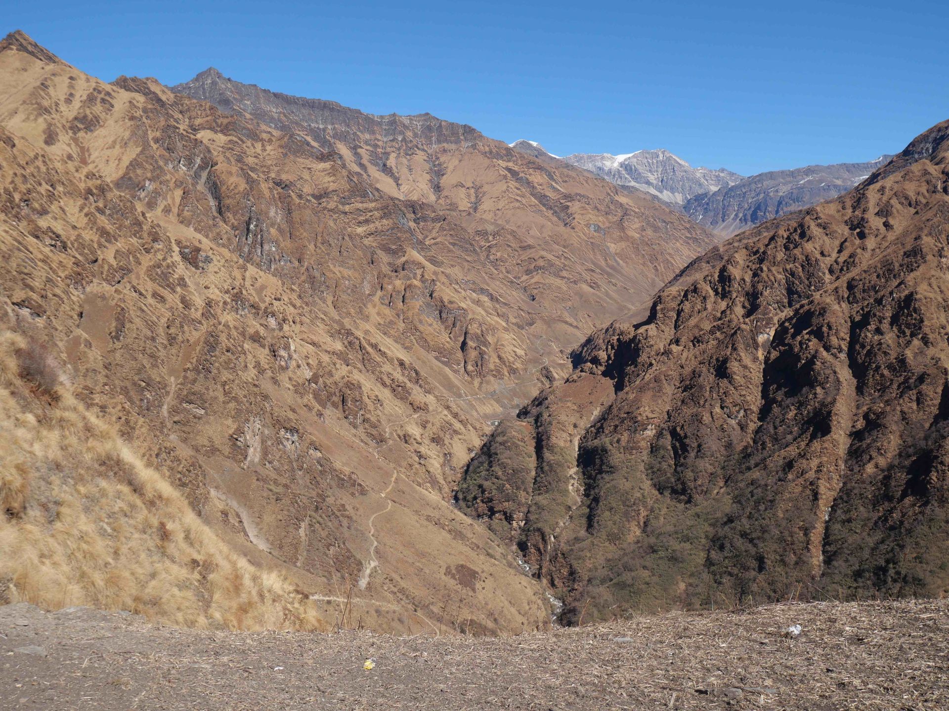 Dann waren es 8 Stunden bis zum Eintreffen in Dhorpatan. Dal Bhat-Pause und andere Unterbrüche abgezogen etwa 5-6 Stunden. Gegen Ende ging es einfach noch geradeaus.