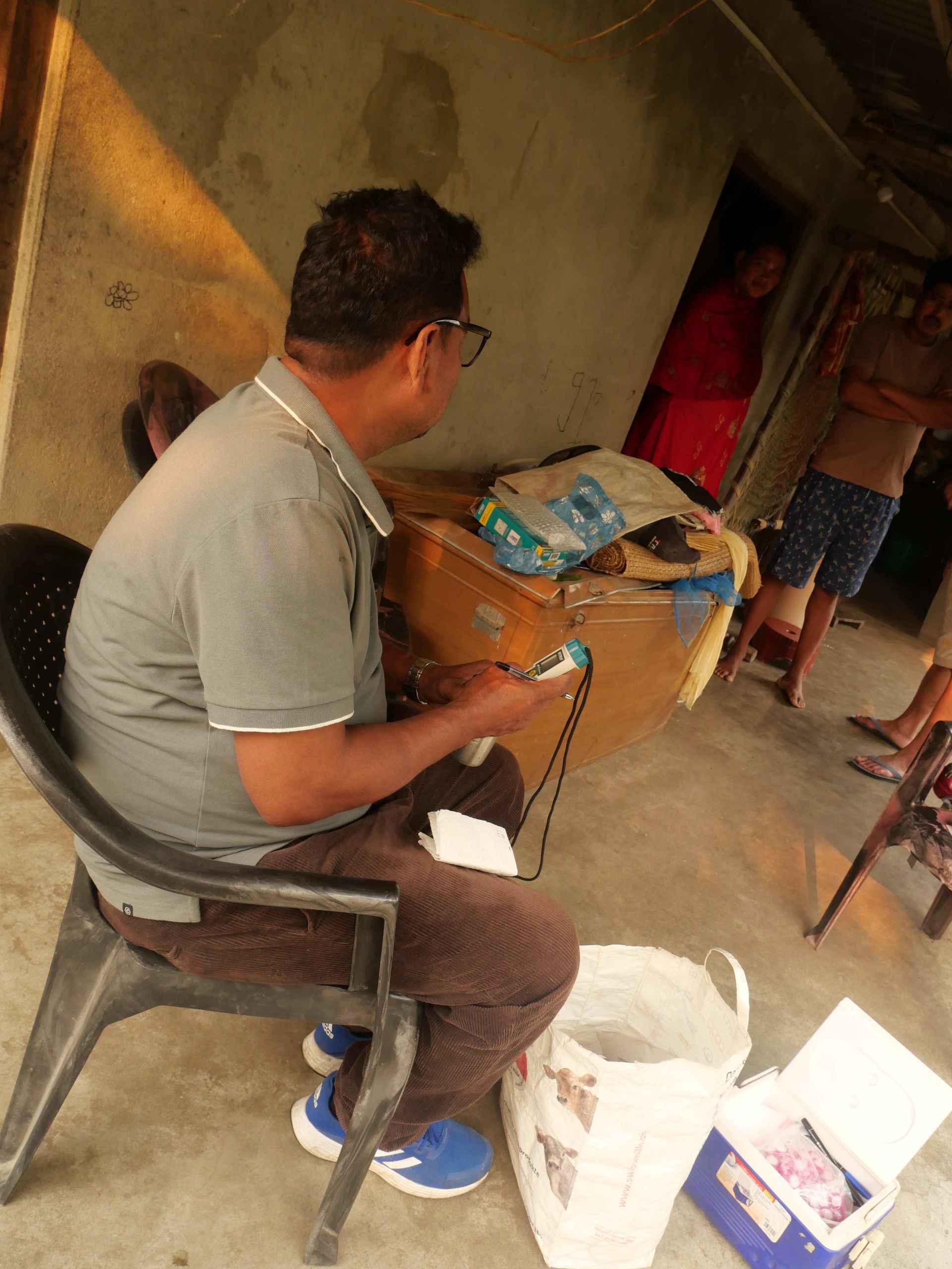 Seit vorgestern sind wir wieder in Kathmandu und sind so dem glutheissen Flachland Nepals wieder entronnen. 16 von ursprünglich 20 Filtern waren noch in Gebrauch und wir konnten Proben nehmen. 2 Haushalte sind inzwischen an eine zentrale Wasserverorgung angeschlossen, aber die Benutzer wissen nicht, ob dieses Wasser vom Arsen befreit wurde. Wir haben auch hier Proben genommen und werden das analysieren.