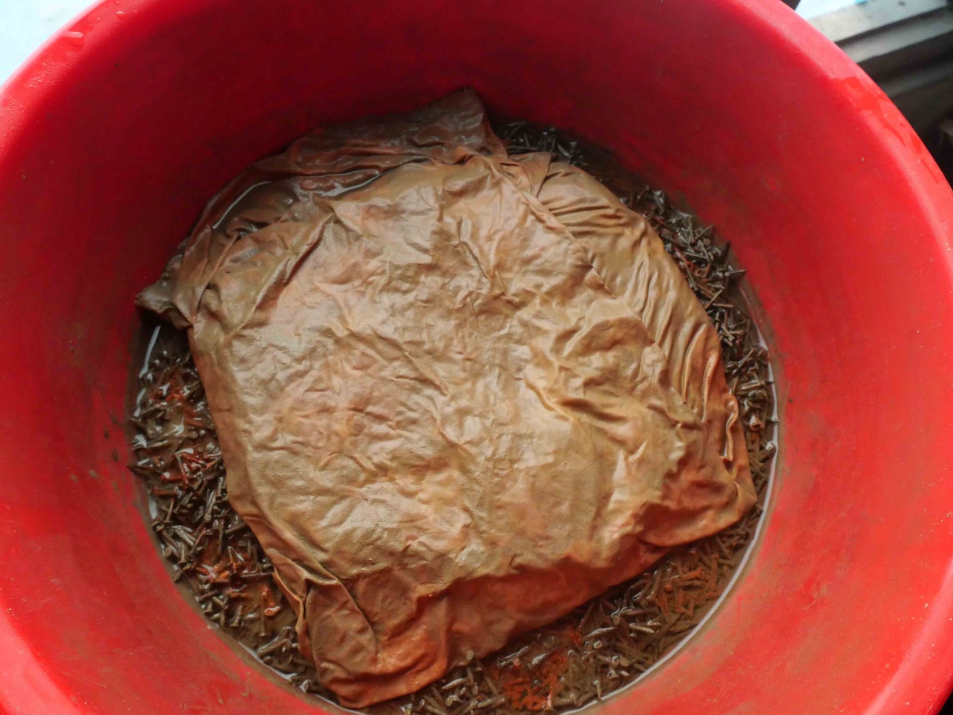 - Die oft hohe Temperatur des Grundwassers fü hrt zu Bildung von Siderit (Eisenkarbonat) auf den Nägeln, der dann die Rostbildung verhindert.
