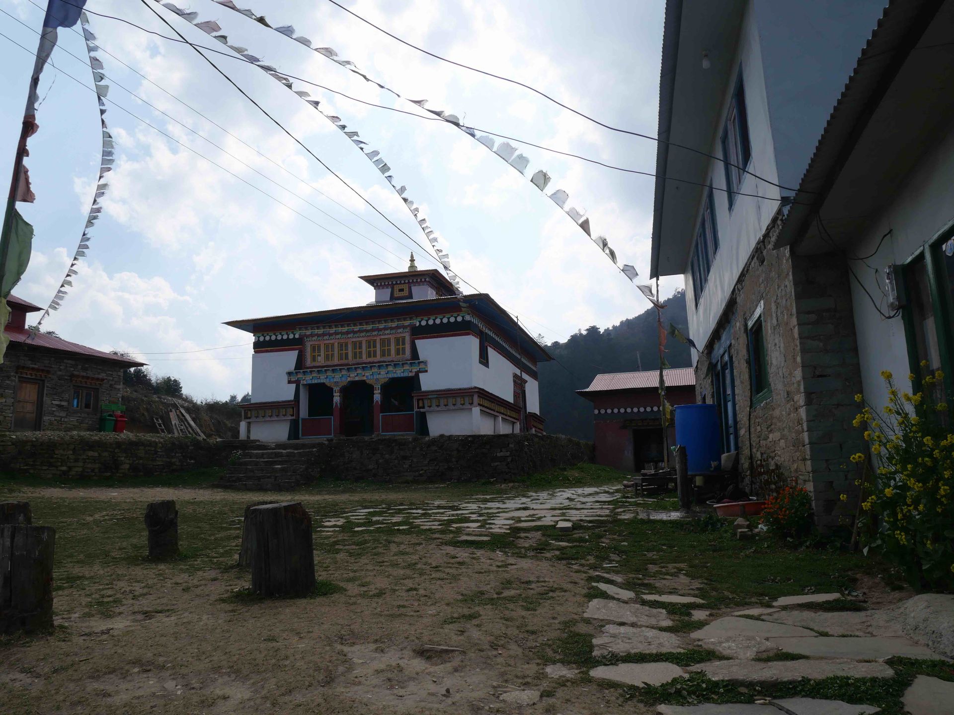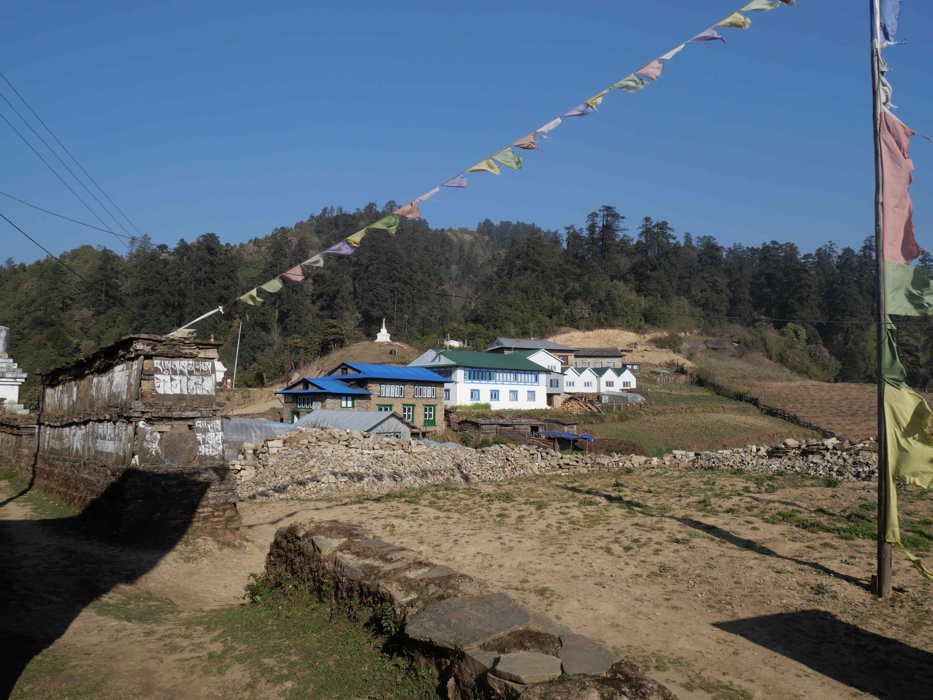 In Lamsung wurde im Hinblick auf den nächsten Höhen-Punkt ein Rasttag wegen der Akklimatisation gemacht, da die Gruppe weniger zu Fuss unterwegs ist. Bei schönem Wetter wurde das Dorf besucht,das praktisch unberührt vom Tourismus ist und Wäsche gewaschen. Sie hat in einer Privatunterkunft mit sehr niedrigen Räumen und sehr einfacher Toilette gewohnt.